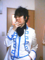 スカーフだけはまだ未完成だけど、イメージ調べる為に着てみましたずぇ(笑) なので完全スッピンの着ただけです; スカーフは適当に部屋の中漁ったら見つけた薄手のマフラー、ヅラは坂本用のを無理矢理ボリュームダウンさせたやつ。 まとめた髪のせいでちょっとヅラが浮いちゃってる; 着々とクローン土方完成に近づいてますわん。 初イベントお披露目は5月5日の土方合わせの予定です♪ |
