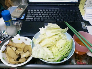 そしてキャベツ切って例のレモンドレッシングかけただけのやつ。これはいつもの事。