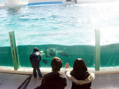 今日発表でした。 「アース」君に決定だそうです! 残念ながら自分の送ったのはボツりましたが、良い名前で満足満足♪ ちなみに自分は「Suno スーノ」と「Beat ビート」の2つを送ってました。 「暖かい太陽の下、太陽のように明るい男の子に育つように」「力強くリズム良く尾びれを使って元気良く泳ぐように」という理由を付けて。 添付画像はアースと見知らぬご家族。 良い感じな絵だったので撮らせてもらった。