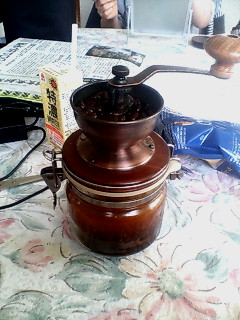 朝から豆挽き