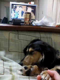 暗くて写メれなかったのが残念…。 無事に家に辿り着き、さっそく犬を転がしてます。 今日は親が夜勤なので、今晩はウチとウィリーだけ。 しばらく帰省恒例親バカ写メ日記になります。 |