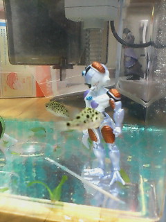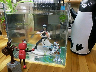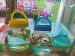 1回200円、1発ずつで計400円。安ッ!! 隣にはグッピーがいましたが、何年も前からハンズ行く度「こいつらかぁええなぁv」と欲しがってて…。 ただ寮だったし、飼育機を持ってなかったので…。 先週ぬめからベタのだけど簡易飼育機を貰ったので、それがこいつらのお家になります♪ えっと…えっと……、ミドリフグの餌は何で、水質環境は何なんだろう…。 |