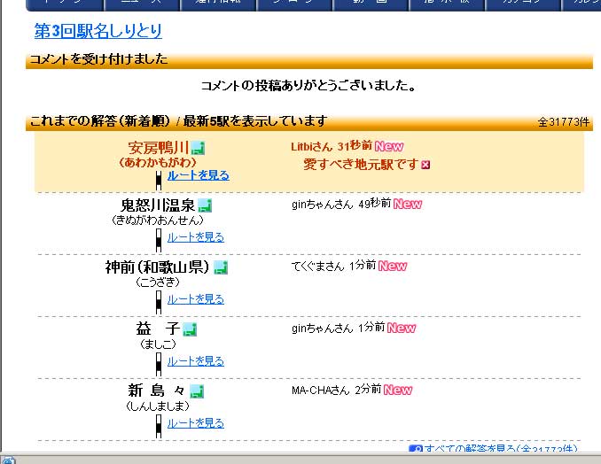 「な」来ないかなー。 ぜってー「行川アイランド」をこの手で入れてやる! 今10ポイント http:// |